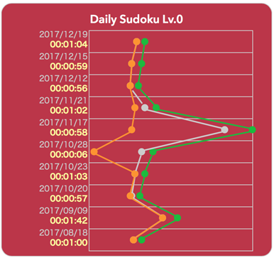 - Check your time history by viewing your target times, as well as the total times and average times of your last 10 daily sudoku puzzles.